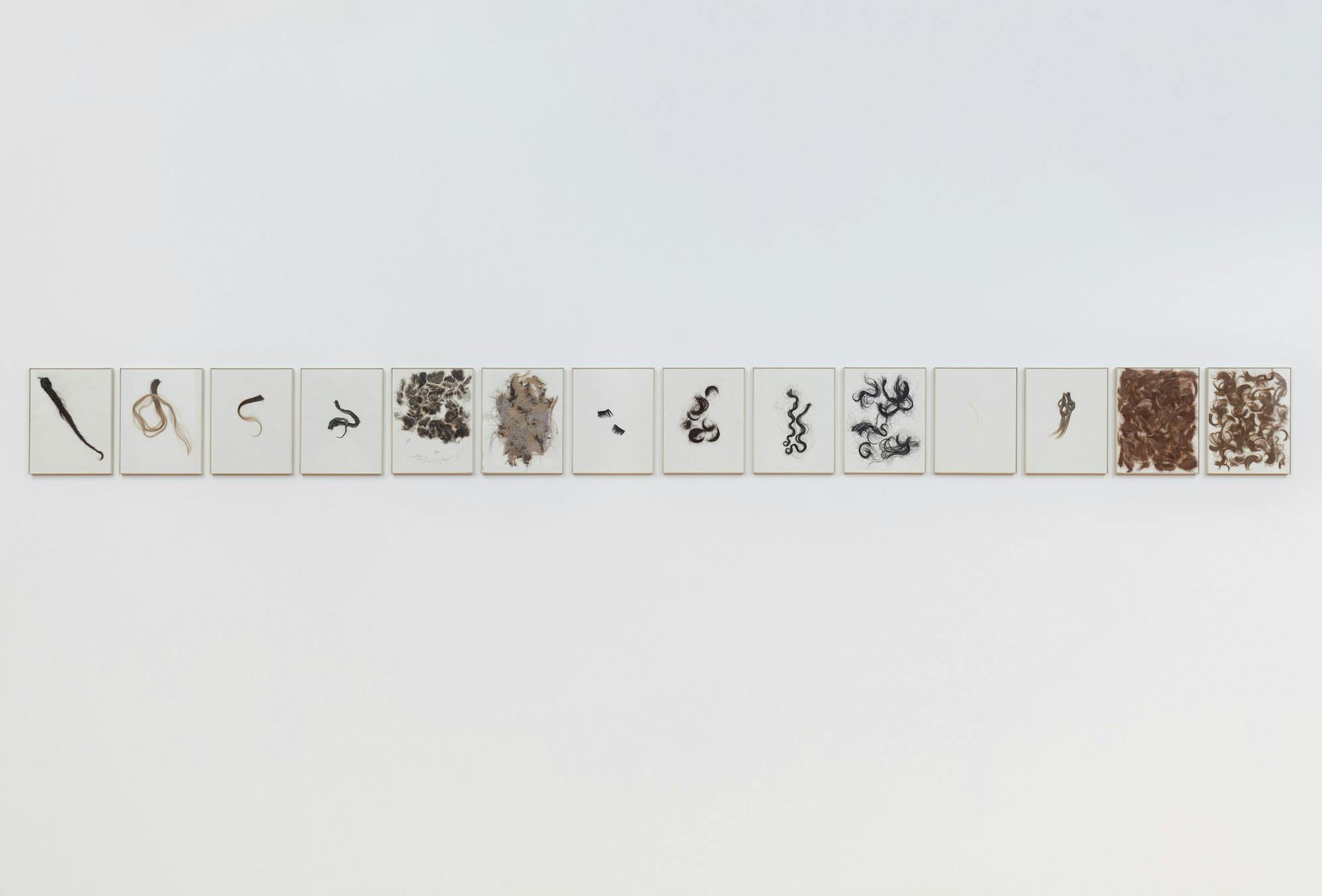 bodily material in 14 artist's Riker mounts (11" x 8.5" each)