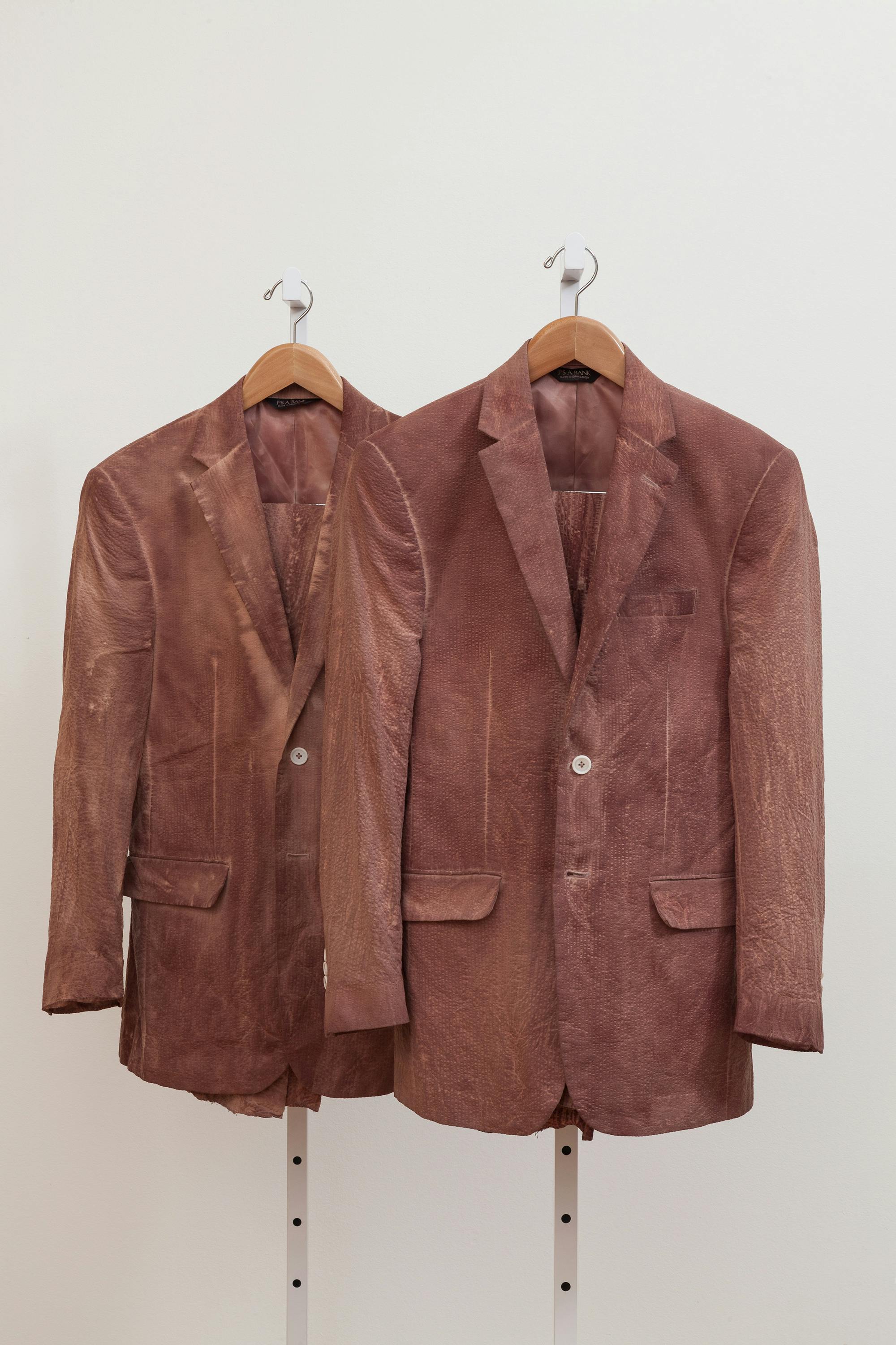 mine and Fred's blood on a pair of cotton seersucker suits, with display fixtures