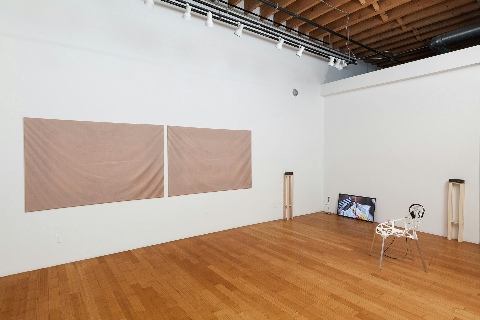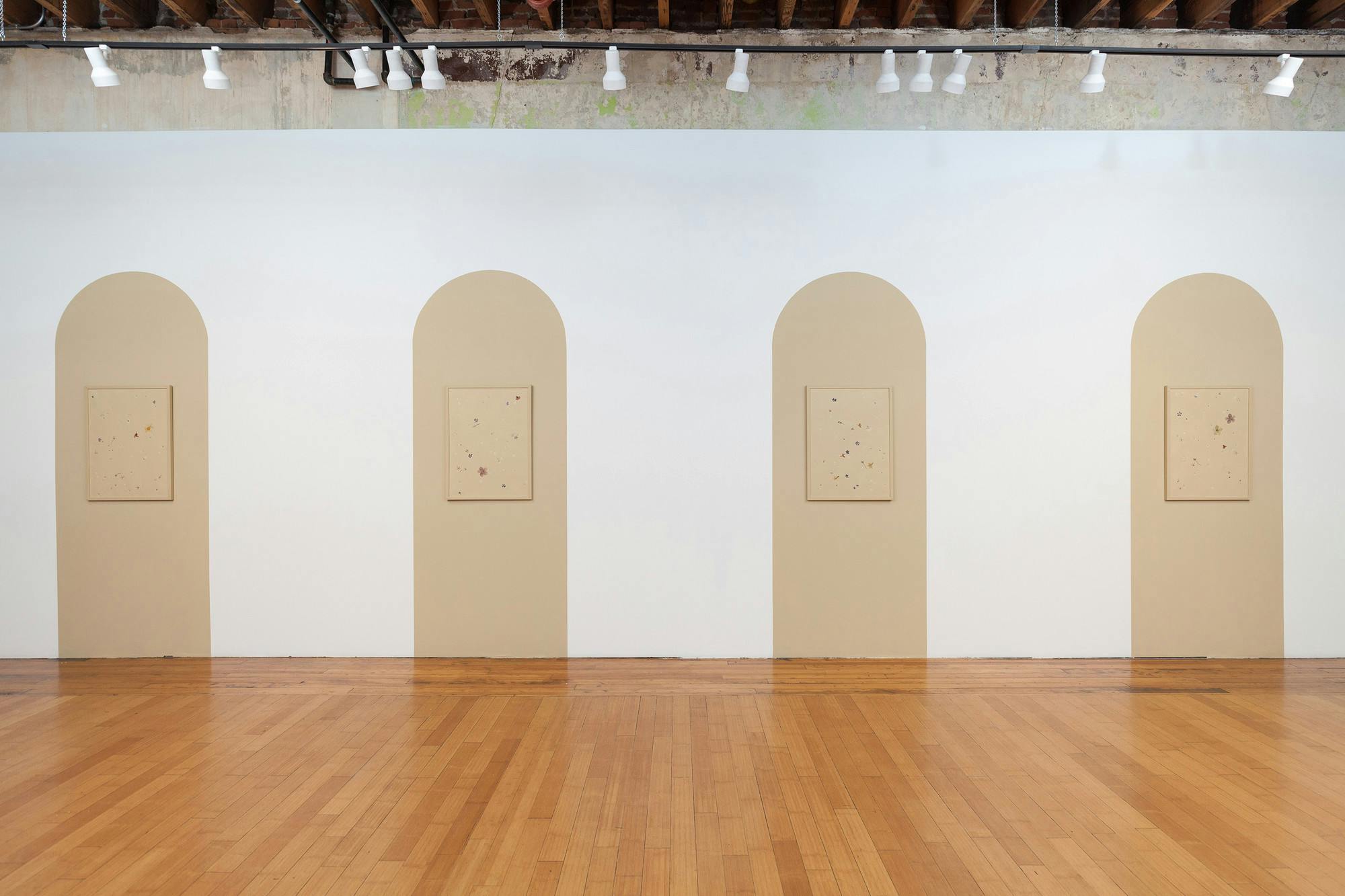 my eyelashes and pressed flowers on embossed paper, in special frames, with wall paint (31” x 23” each)