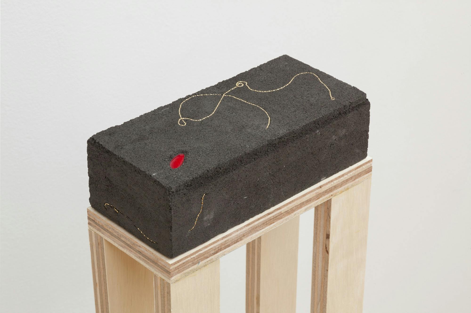 Bambi’s nail and Josh’s gold chain in NASA Lunar Regolith Brick (JSC-1A lunar soil simulant and bovine serum albumin)